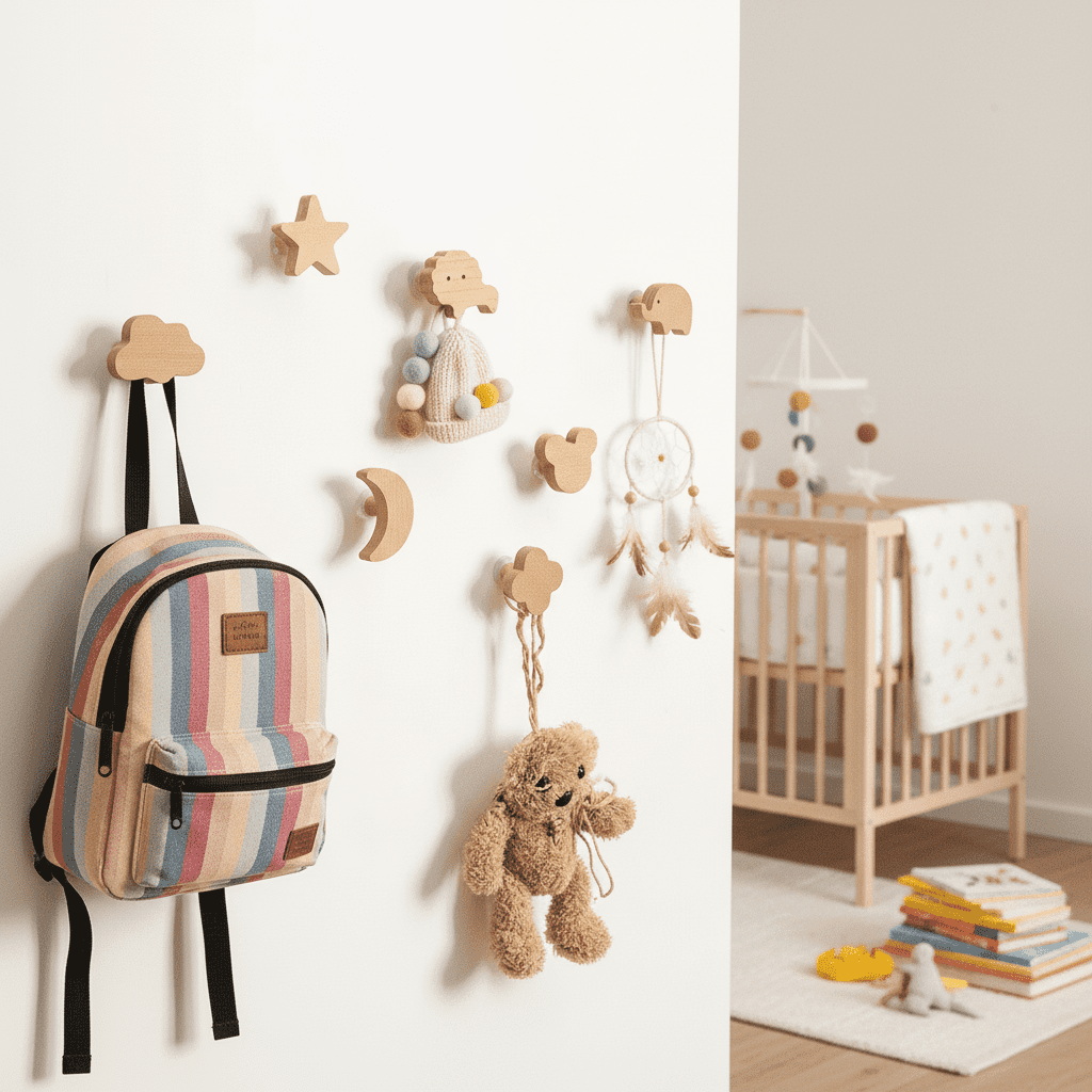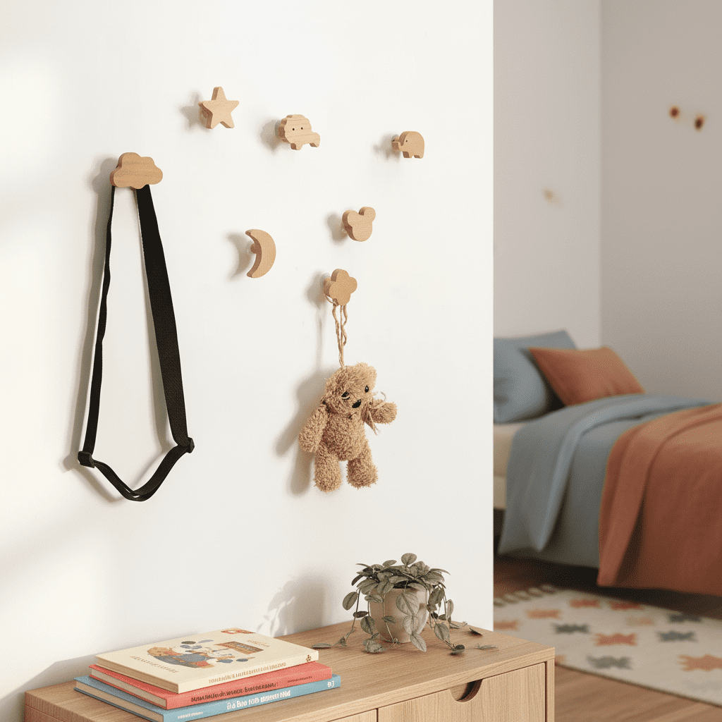 Parfait pour accrocher pyjamas, serviettes, sacs à dos ou déguisements dans la chambre, salle de bain ou salle de jeux. Idéal également comme cadeau de naissance ou d’anniversaire pour créer un cocon douillet et fonctionnel.