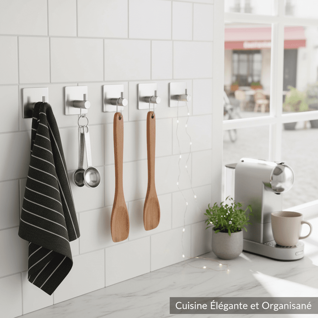 Vous en avez assez du désordre dans votre cuisine et salle de bain ? Fini les trous dans les murs et les supports compliqués à installer. Ces 7 patères murales adhésives offrent une solution moderne et pratique pour suspendre serviettes, ustensiles de cuisine, vestes et accessoires en toute simplicité.