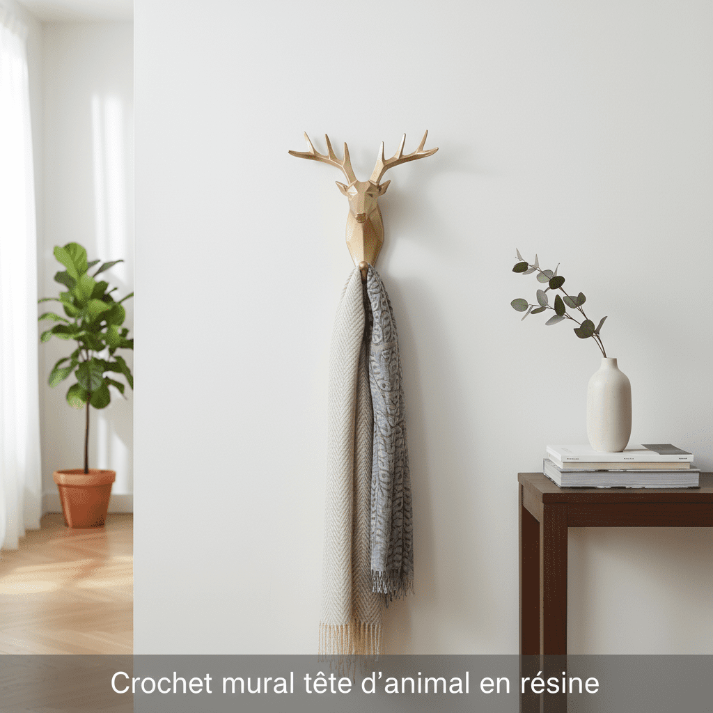 Crochet mural tête d’animal en résine – Porte-manteau décoratif