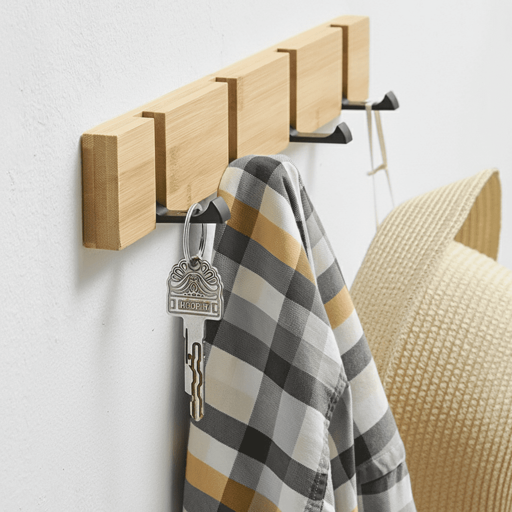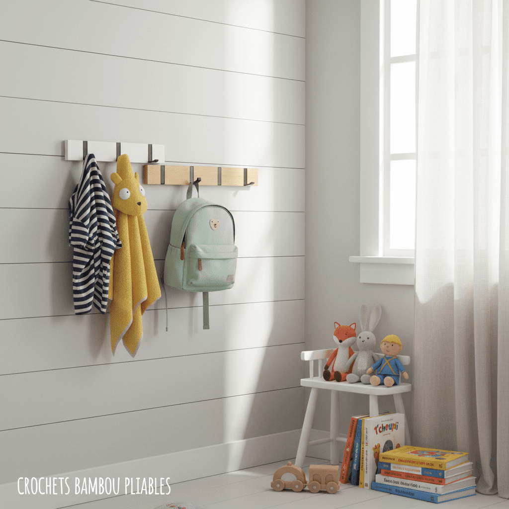 Crochets muraux bambou pliables – porte-manteau salle de bain