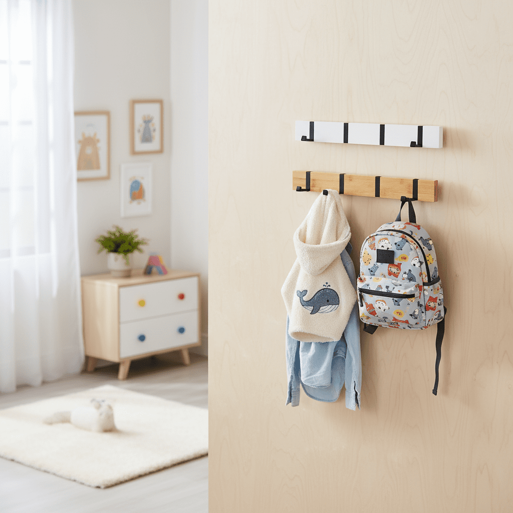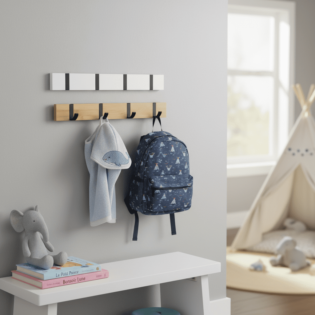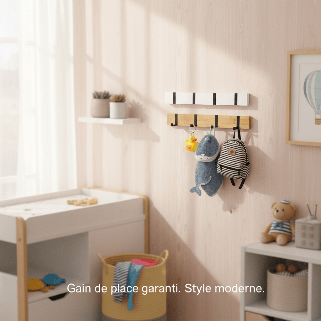 Porte-manteau mural bois massif – Crochets déco enfant couloir