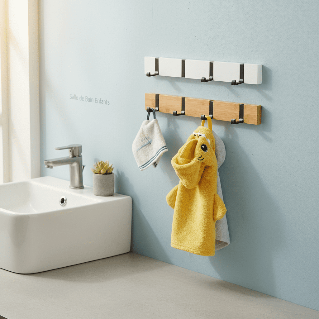 Idéal pour salle de bain, chambre, entrée ou dressing, ce porte-manteau mural convient aussi bien aux adultes qu’aux enfants grâce à sa hauteur d’installation modulable.